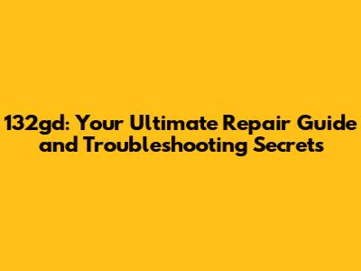 132gd: Your Ultimate Repair Guide And Troubleshooting Secrets