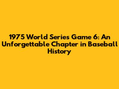 1975 World Series Game 6: Unforgettable Baseball History