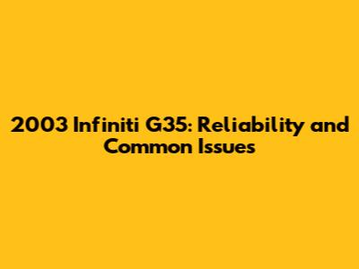 2003 Infiniti G35: Reliability And Common Issues