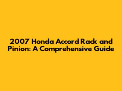2007 Honda Accord Rack And Pinion: A Comprehensive Guide