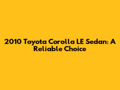 2010 Toyota Corolla LE Sedan: A Reliable Choice