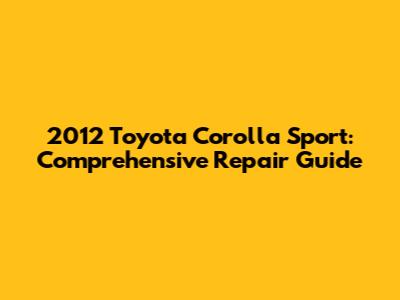 2012 Toyota Corolla Sport: Comprehensive Repair Guide