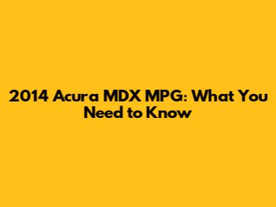 2014 Acura MDX MPG: What You Need To Know