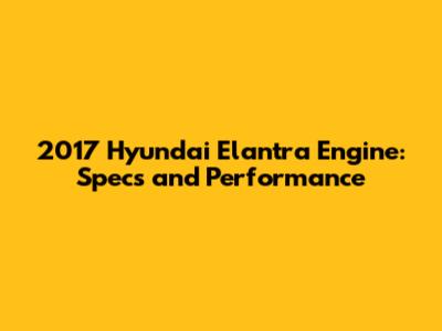 2017 Hyundai Elantra Engine: Specs And Performance