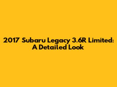 Hey everyone, let's dive into the 2017 Subaru Legacy 3.6R Limited. If you're in the market for a solid mid-size sedan that offers a bit more than the usual, this is definitely one to consider. Subaru has a reputation for making reliable cars, and the Legacy is their flagship sedan, blending comfort, safety, and a touch of sportiness. The 3.6R Limited trim is where you get some of the best features Subaru had to offer in 2017, making it a compelling choice for those who want a bit of everything.