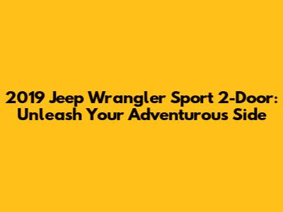 Hey guys! Are you ready to dive into the world of off-roading and open-air freedom? Then buckle up, because we're about to explore the 2019 Jeep Wrangler Sport 2-Door! This iconic vehicle isn't just a mode of transportation; it's a statement. It's a declaration that you're ready to tackle any terrain, embrace the elements, and experience the thrill of the open road – or, more accurately, the open trail.