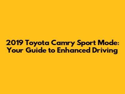 Hey guys! Ever wondered about sport mode in your 2019 Toyota Camry? You're in luck because we're about to dive deep into what it is, how it works, and why you might want to use it. Buckle up, because we're going for a ride! The 2019 Toyota Camry is a fantastic car, known for its reliability and comfortable ride. But did you know there's a hidden performance upgrade lurking right there on your center console? That's right, we're talking about sport mode. It's a feature designed to inject a little excitement into your daily commute, giving you a more engaging and responsive driving experience. We'll explore the ins and outs, so you can make the most of your Camry's capabilities. Whether you're a seasoned driver or a newbie, understanding sport mode can significantly enhance your driving pleasure. Let's get started, shall we?