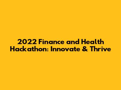 2022 Finance And Health Hackathon: Innovate & Thrive