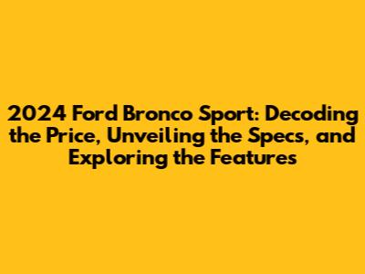 Hey there, gearheads! Are you guys as hyped about the 2024 Ford Bronco Sport as I am? This little beast of an SUV is turning heads, and for good reason! It's got that rugged Bronco DNA, but in a more compact, city-friendly package. But what's the real deal? What's the price? What specs make it tick? And what cool features are packed inside? Let's dive in and break it all down, shall we? This article is your one-stop shop for everything you need to know about the 2024 Ford Bronco Sport, from its sticker price to its off-road capabilities. We'll explore the different trims, engine options, and tech features, ensuring you're well-informed before you hit the dealership. So, buckle up, because we're about to embark on a thrilling journey through the world of the 2024 Bronco Sport. Let's get started!