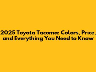 2025 Toyota Tacoma: Colors, Price, And Everything You Need To Know