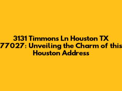 Hey guys! Let's dive into everything you need to know about 3131 Timmons Ln, Houston, TX 77027. This address isn't just a set of numbers; it's a gateway to a vibrant neighborhood, brimming with opportunities and local flavor. Whether you're considering moving here, investing in the area, or just curious about this part of Houston, stick around. We're about to break down what makes 3131 Timmons Ln a spot worth knowing.