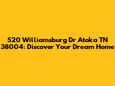 Hey guys! Are you looking for a fantastic property in Atoka, Tennessee? Let's dive deep into everything you need to know about 520 Williamsburg Dr, Atoka, TN 38004. This article provides an exhaustive overview, covering location, property features, local amenities, and why this address might just be your dream home.