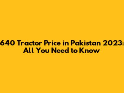 640 Tractor Price In Pakistan 2023: All You Need To Know