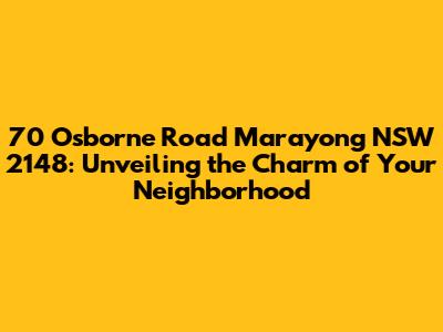 Hey there, fellow explorer! Let's dive headfirst into the vibrant heart of Marayong, NSW, and uncover the hidden gems nestled at 70 Osborne Road. This isn't just about a street address; it's about the pulse of a community, the aroma of delicious food wafting from local eateries, and the friendly faces that make this place so special. Get ready to explore! We're talking about more than just houses and streets; we're talking about a lifestyle, a network of neighbors, and a world of opportunities right at your doorstep. Whether you're a long-time resident, a curious newcomer, or just someone who loves to explore, you're in for a treat. This guide will be your friendly companion, leading you through the best spots and secrets of this awesome part of the world.