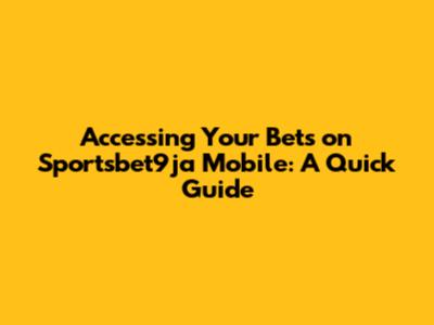 Accessing Your Bets On Sportsbet9ja Mobile: A Quick Guide