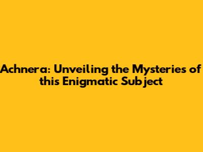 Achnera: Unveiling The Mysteries Of This Enigmatic Subject