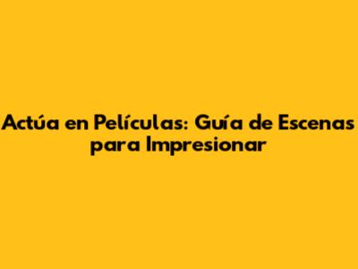 Actúa En Películas: Guía De Escenas Para Impresionar
