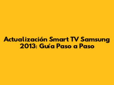 Guía Paso a Paso para Actualizar tu Smart TV Samsung 2013