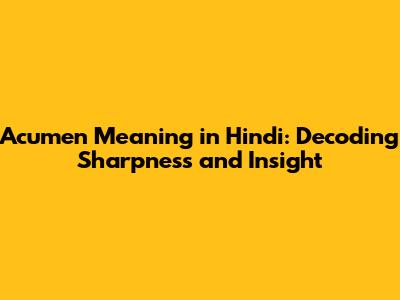 Acumen: Meaning, Hindi Translation & Antonyms Explained