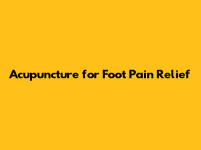 Acupuncture For Foot Pain Relief