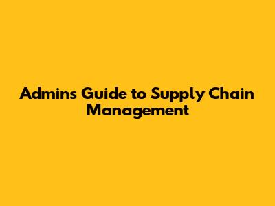Admin's Guide To Supply Chain Management
