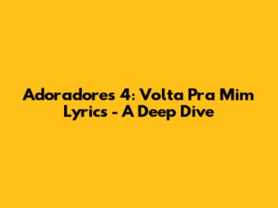 Adoradores 4: Volta Pra Mim Lyrics - A Deep Dive