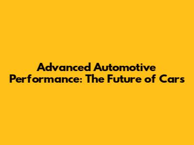 Advanced Automotive Performance: The Future Of Cars