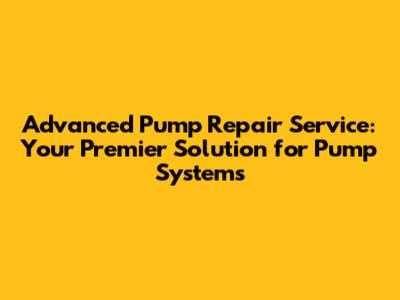 Advanced Pump Repair Service: Expertise & Solutions