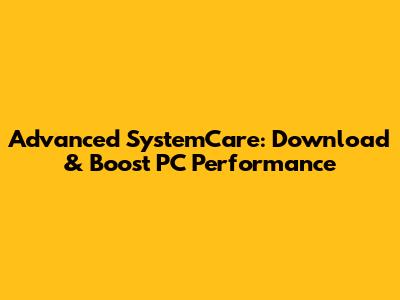 Advanced SystemCare: Download & Boost PC Performance