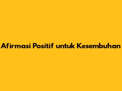 Afirmasi Positif Untuk Kesembuhan