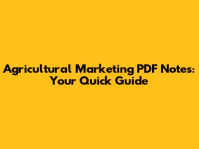 Agricultural Marketing PDF Notes: Your Quick Guide