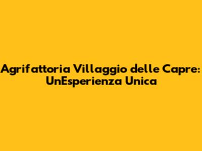 Agrifattoria Villaggio Delle Capre: Un'Esperienza Unica