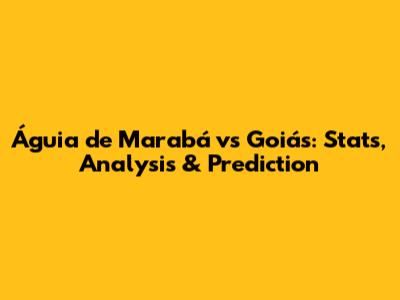 Águia De Marabá Vs Goiás: Stats, Analysis & Prediction