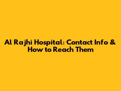 Al Rajhi Hospital: Contact Info & How To Reach Them