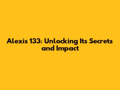 Alexis 133: Unlocking Its Secrets And Impact