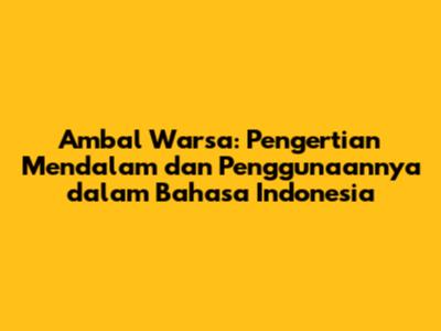 Ambal Warsa: Pengertian Dan Penggunaan Dalam Bahasa Indonesia
