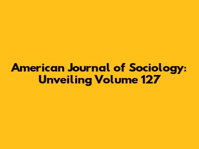 American Journal Of Sociology: Unveiling Volume 127