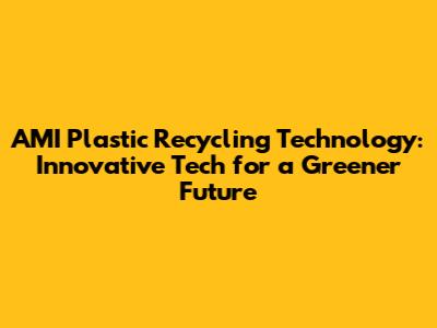 AMI Plastic Recycling: Innovative Tech For A Greener Future