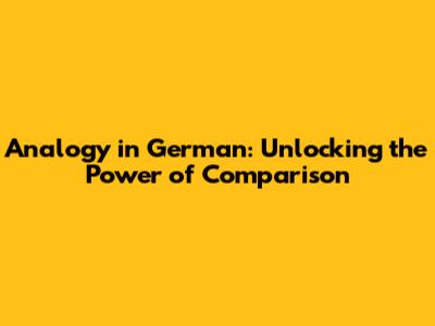 Analogy In German: Unlocking The Power Of Comparison