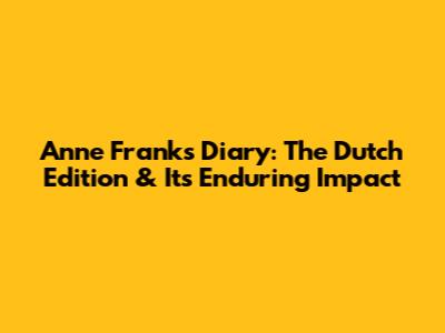 Anne Frank's Diary: The Dutch Edition & Its Enduring Impact