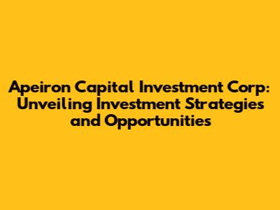 Hey everyone! Let's dive deep into Apeiron Capital Investment Corp, shall we? This isn't just about throwing money around; it's about understanding the game, finding the sweet spots, and hopefully, making some gains. I'm going to break down their strategies, the kinds of opportunities they're eyeing, and some insights that might just help you navigate the investment world a little better. Investing can feel like a maze, but don't worry, we'll get through it together. So, grab a coffee (or your favorite beverage), and let's explore.