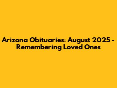 August 2025 marks a period of collective remembrance as we honor the lives of those who have passed away in Arizona. This month, the obituaries published reflect the diverse experiences and contributions of individuals from various backgrounds and communities. Each obituary tells a story of a life lived, offering a glimpse into the person's passions, achievements, and the impact they had on those around them. From educators and artists to entrepreneurs and community leaders, the obituaries in August 2025 highlight the rich tapestry of lives that have shaped the state of Arizona. As we read these tributes, we are reminded of the importance of cherishing each moment and celebrating the lives of those who have touched our hearts.