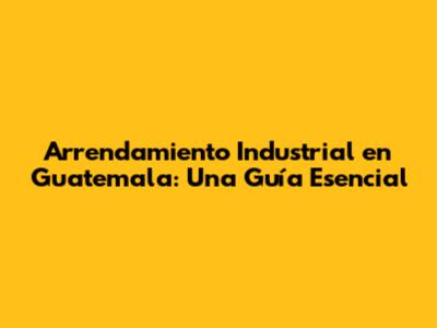 Arrendamiento Industrial En Guatemala: Una Guía Esencial