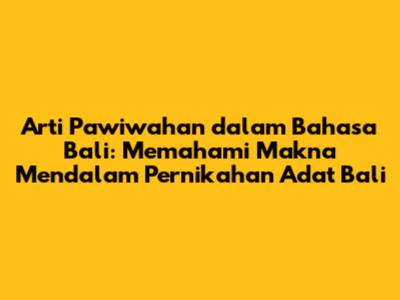 Dengan memahami dan melestarikan arti pawiwahan dalam bahasa Bali, kita turut menjaga kekayaan budaya Indonesia dan mewariskan nilai-nilai luhur kepada generasi mendatang. Pawiwahan bukan hanya sekadar upacara, tetapi juga cerminan dari identitas dan jati diri masyarakat Bali yang kaya akan tradisi dan kearifan lokal.