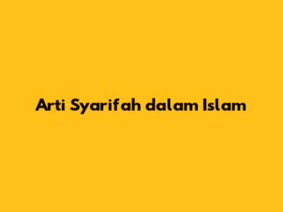 Arti Syarifah Dalam Islam