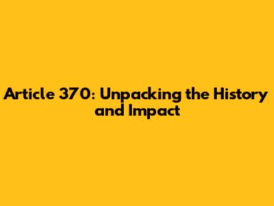 Article 370: Unpacking The History And Impact