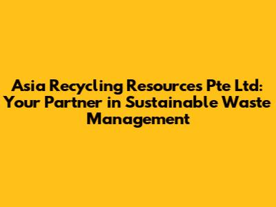 Are you looking for reliable and eco-friendly waste management solutions in Asia? Then you've come to the right place! In this article, we'll delve deep into Asia Recycling Resources Pte Ltd, exploring its mission, services, and impact on promoting sustainability in the region. Let's dive in, guys!