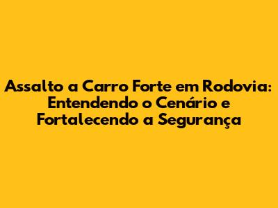 Assalto A Carro Forte Em Rodovia: Análise E Medidas De Segurança