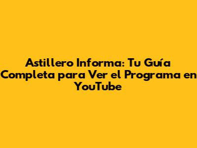 Astillero Informa: Tu Guía Completa Para Ver El Programa En YouTube