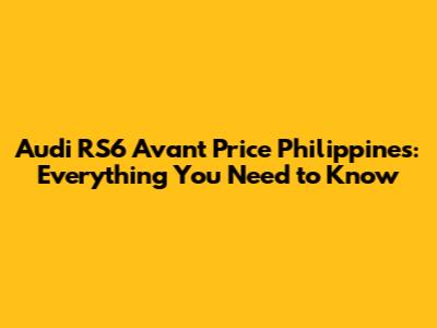 Audi RS6 Avant Price In The Philippines: A Comprehensive Guide